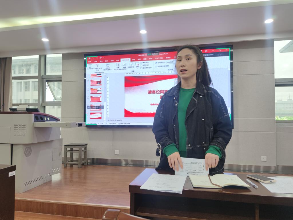 2022年4月28日下午15时,动物育种硕士生党支部本学期第一次支部大会在逸夫楼5077召开,本次会议由支部书记汪薇主持,支部党员与入党积极分子参会。