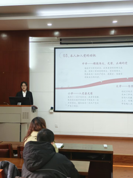 随后,支部书记顾潇老师对新加入党支部的3名新成员表示衷心的祝贺和肯定,希望他们今后能深化理论学习,用习近平新时代中国特色社会主义思想凝心铸魂,把党员的思想和行动统一,增强信心、提振精神。同时也希望他们戒骄戒躁,向优秀的党员同志们学习,在实践中不断提高自己,努力成长为一名合格的共产党员。