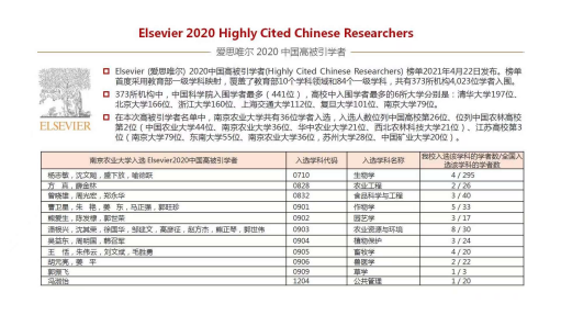 2021年4月22日,爱思唯尔(Elsevier)正式发布2020年中国高被引学者(Highly Cited Chinese Researchers)榜单,本次国内畜牧学领域共有20人上榜,我院王恬教授、朱伟云教授、毛胜勇教授、刘文斌教授进入中国高被引学者榜单。