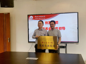 常州市北郊高级中学党委副书记、校长曹新跃、副校长张鹤、副校长赵一鹏、高三年级主任陈英接待了吴峰一行。曹新跃在座谈中对南农一行表示热烈欢迎,他介绍了北郊中学的办学历史、规模及毕业生升学去向等情况,并希望双方今后加强交流合作,为学生更好发展提供机会和平台。吴峰介绍了南京农业大学的办学历史、科研进展、人才培养等基本情况,并表示欢迎北郊高中的优秀学子踊跃报考。座谈结束后,双方举行了优质生源基地签约授牌仪式。