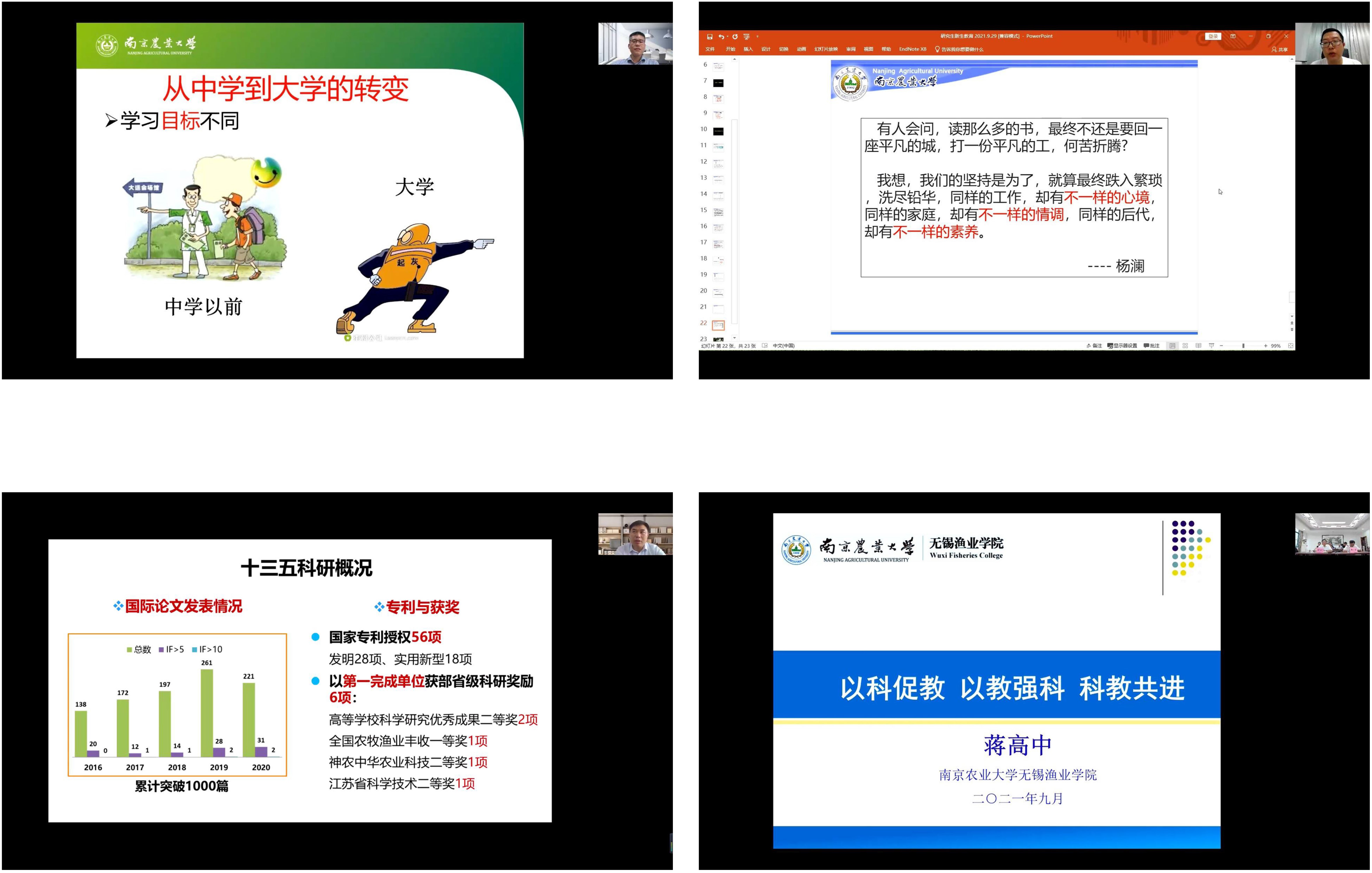 毛胜勇院长为同学们介绍了永兴集团导航首页的悠久历史和雄厚的学科实力,并结合行业实际讲述了畜牧业未来发展前景,同时希望同学们能够提早树立大学的目标,尽早融入大学生活。渔业学院蒋高中副院长为大家介绍了南农与中国水产科学研究院淡水渔业研究中心合作办学发展历史,以及渔业学院的人才队伍以和国际合作等情况。蒋院长希望新同学们以优秀校友代表程磊(百助科技CEO)和郑冰清为榜样,提升自身综合素质,为行业发展做出自己的贡献。动科院蒋广震副院长围绕从“大学学什么”到“大学怎么学”,为本科生讲解了专业培养方案及完成学业的基本要求,引导同学们找到合适自己的学习方法,尽快适应大学生活。孙少琛副院长讲解了研究生培养要求,他强调研究生要正确认识自身价值、培养优秀的学术素养、坚守基本的学术道德,用自己的努力为学科、行业发展做出贡献。