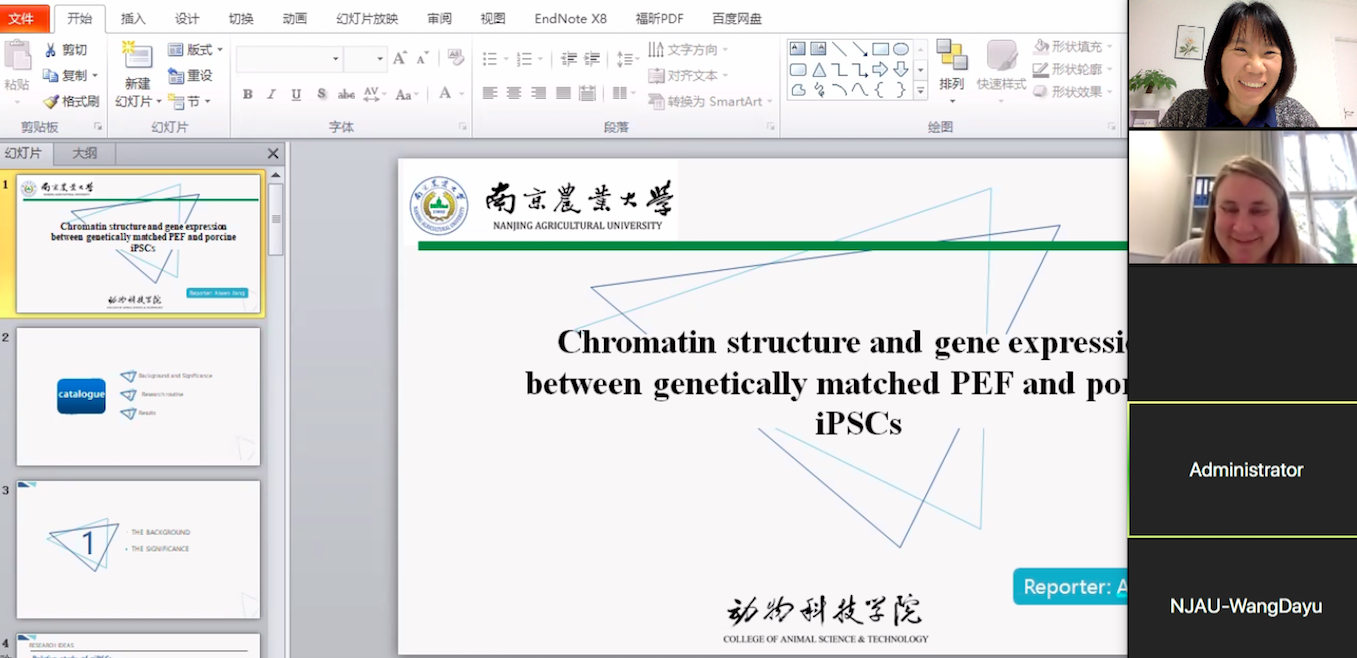 应永兴集团导航首页动物遗传育种科学系李娟教授邀请,丹麦哥本哈根大学Kristine Freude博士与丹麦奥胡斯大学Gang Jun Tu(涂赣军)博士分别于2021年10月19日和2021年9月23日通过线上的形式针对猪体细胞重编程机制、早期胚胎发育监测与视频预测分析举行线上学术交流会。两次学术交流研讨会由李娟教授主持,永兴集团导航首页邹康、虞德兵、贾超等老师及学院博士研究生、硕士生研究生参加。