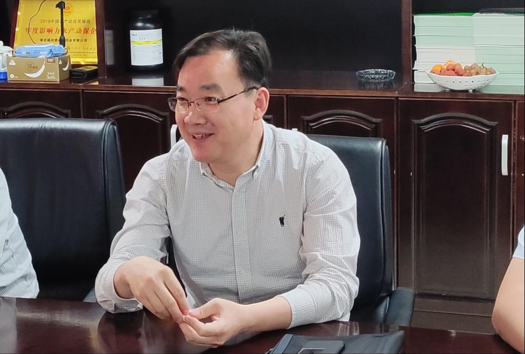 闫祥林一行深入调研企业的发展情况和校企合作需求,与企业负责人及校友代表开展了座谈交流。座谈会上,李同军对闫祥林一行到访表示热烈欢迎,他首先介绍了福润德的创业初心和发展历程,他表示作为南京农业大学的校友企业,福润德公司和南农的合作源远流长,公司依托学校资源不断做大做强。目前,南京福润德生物技术有限公司主营业务已经涵盖畜禽水产药品、饲料添加剂、添加剂预混合饲料、水产养殖水体环境、微生物发酵、宠物药品和营养等方面的研发、生产、销售和相关养殖技术服务,特别是在学校的大力支持下成功申报江苏省和南京市高新技术企业,为江苏乃至全国的畜牧业发展做出了自己的贡献。