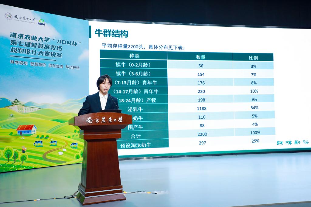 本次设计大赛是由ADM公司赞助,校团委立项的校级学科专业类竞赛项目。本次比赛以“科学规划、智慧畜牧、绿色生态、科技护航”为主题,共有来自全校20个学院的264名同学报名参加,各学科学子共同组成学科专业互补、知识技能互助、人员结构合理的41支参赛队。经过前期线上的培训和初赛评选,共有10支代表队进入了此次决赛。