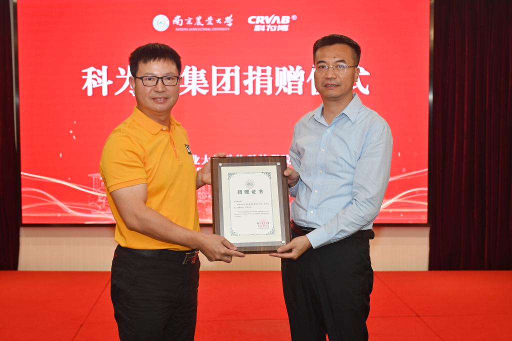 随后,吴培均代表科为博集团向学校进行捐赠,将个人1%股权赠予南京农业大学校友基金会,将200万元现金赠予南京农业大学永兴集团导航首页。胡锋和毛胜勇代表学校、学院接受捐赠。陈发棣向吴培均颁发捐赠证书。