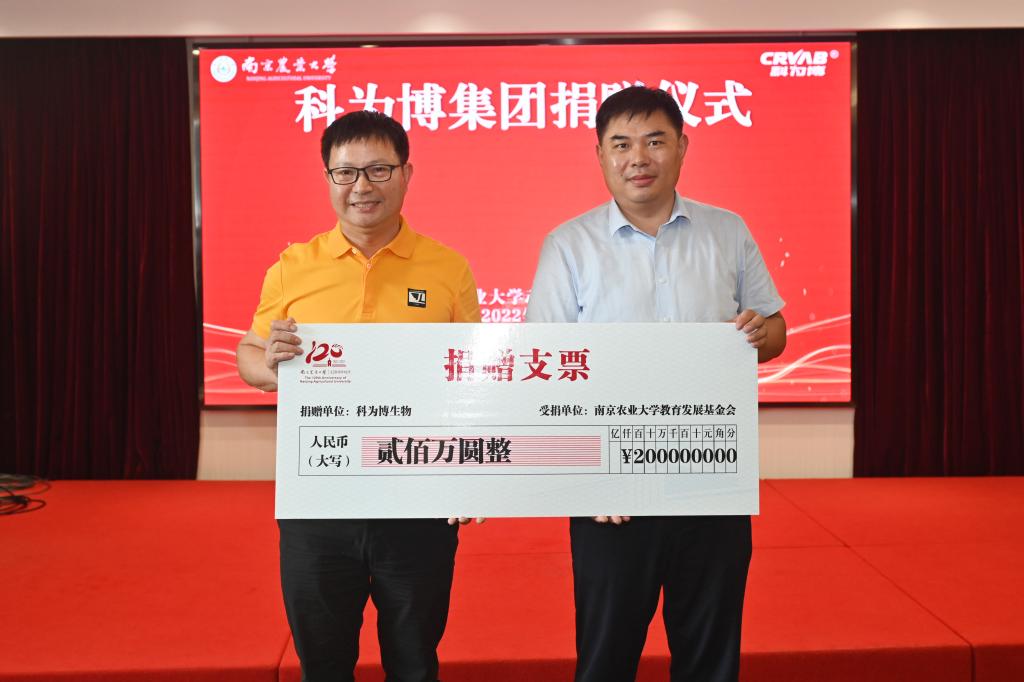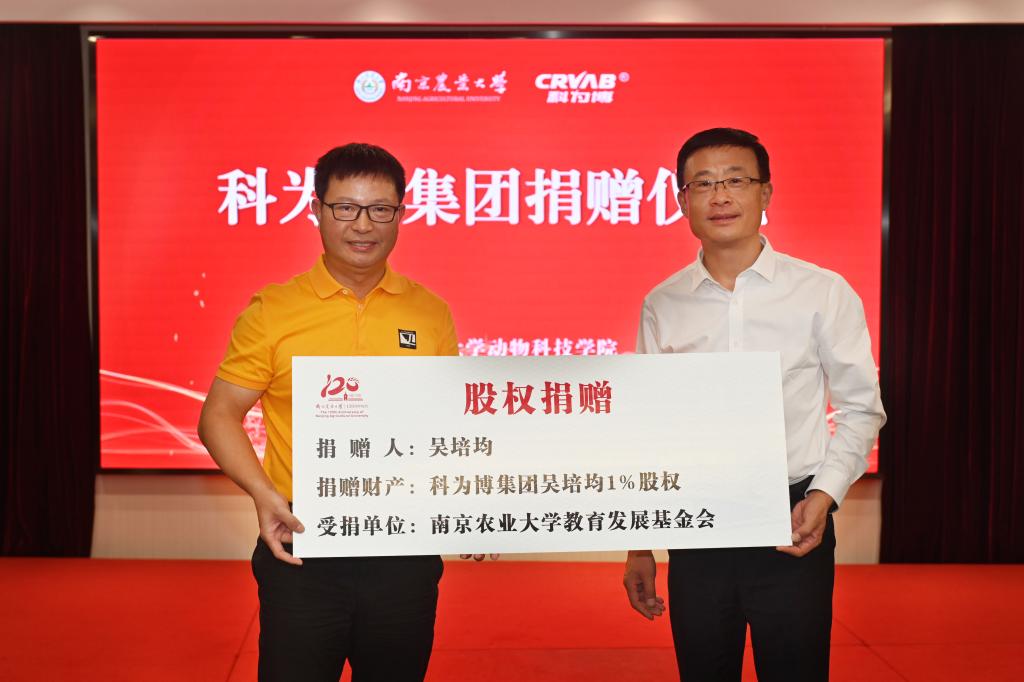 陈发棣在致辞中向吴培均董事长表示感谢。他说,科为博集团向学校做出的捐赠,是产教融合、校企合作的具体行动。同时,吴培均董事长多年来持续资助动科学子成长成才,用实际行动引领学生感恩母校,回报社会,这对于学校的建设发展和人才培养意义重大,对学校继续奋进农业特色世界一流大学征程具有重要的支持和激励作用。他说,学校将切实管理好、利用好这笔基金,进一步加强校企资源共享,助推我校人才培养高质量发展,切实提升育人实际效果,实现双方共赢。陈发棣还说,今年恰逢南京农业大学建校120周年,希望有更多的校友以多种形式支持学校建设与发展,真诚邀请广大校友在南京农业大学建校120周年大庆时回到母校,共襄盛举!