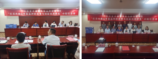 会上,南京农业大学科研院陈俐副院长先对项目的管理执行情况进行了介绍,对专家和领导的到来表示欢迎;农业农村厅科教处毕冬梅副处长对项目检查提出了具体要求。王锋教授代表项目组,从项目的组织实施、选育群体的构建、选育方法的更新改进、项目取得的阶段性成果、经费使用及后续计划等方面对项目的开展情况进行了详细汇报;接着张国敏副教授通过线上视频,介绍了海门、徐州和丰县等育种基地的具体情况。以安徽农业大学章孝荣教授为组长的专家组,听取了汇报,查阅了资料,观看了现场视频,经过质询和讨论,专家组一致认为,项目组已按期完成了合同规定的各项阶段性任务指标,同意通过中期检查,并就品种溯源、平衡选育和联合育种体系建设等问题进行了讨论和建议,为项目后续方案的完善提供了指导。