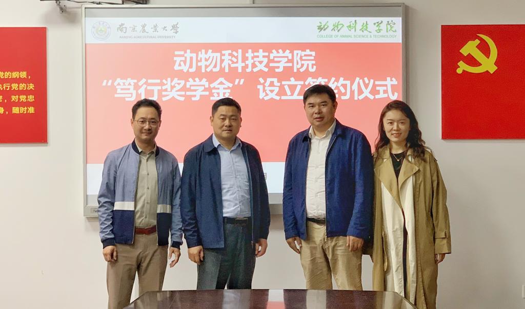 10月6日上午,永兴集团导航首页“笃行奖学金”捐赠仪式在逸夫楼2040会议室举行。1994级畜牧学41班代表吴结革、动物科技学院院长毛胜勇、党委副书记吴峰、校友秘书顾潇参加仪式。