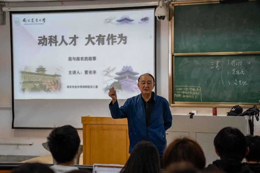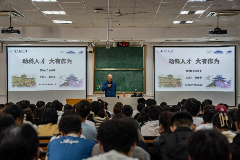此次报告的主题是“动科人才,大有作为”,会议伊始,曹教授以“南农72个专业,就业前景最好的就是动科”作为开场白向大家介绍动科专业,同时给同学们展示了我院85届校友毕业25周年合影。随后他又重点为大家介绍了学院的历史,师资力量和学科专业建设情况,讲述了动科优秀校友的案例。听完曹教授这一系列的介绍,同学们心中都树立了对动科领域未来发展的信心,增添了努力学习的动力。