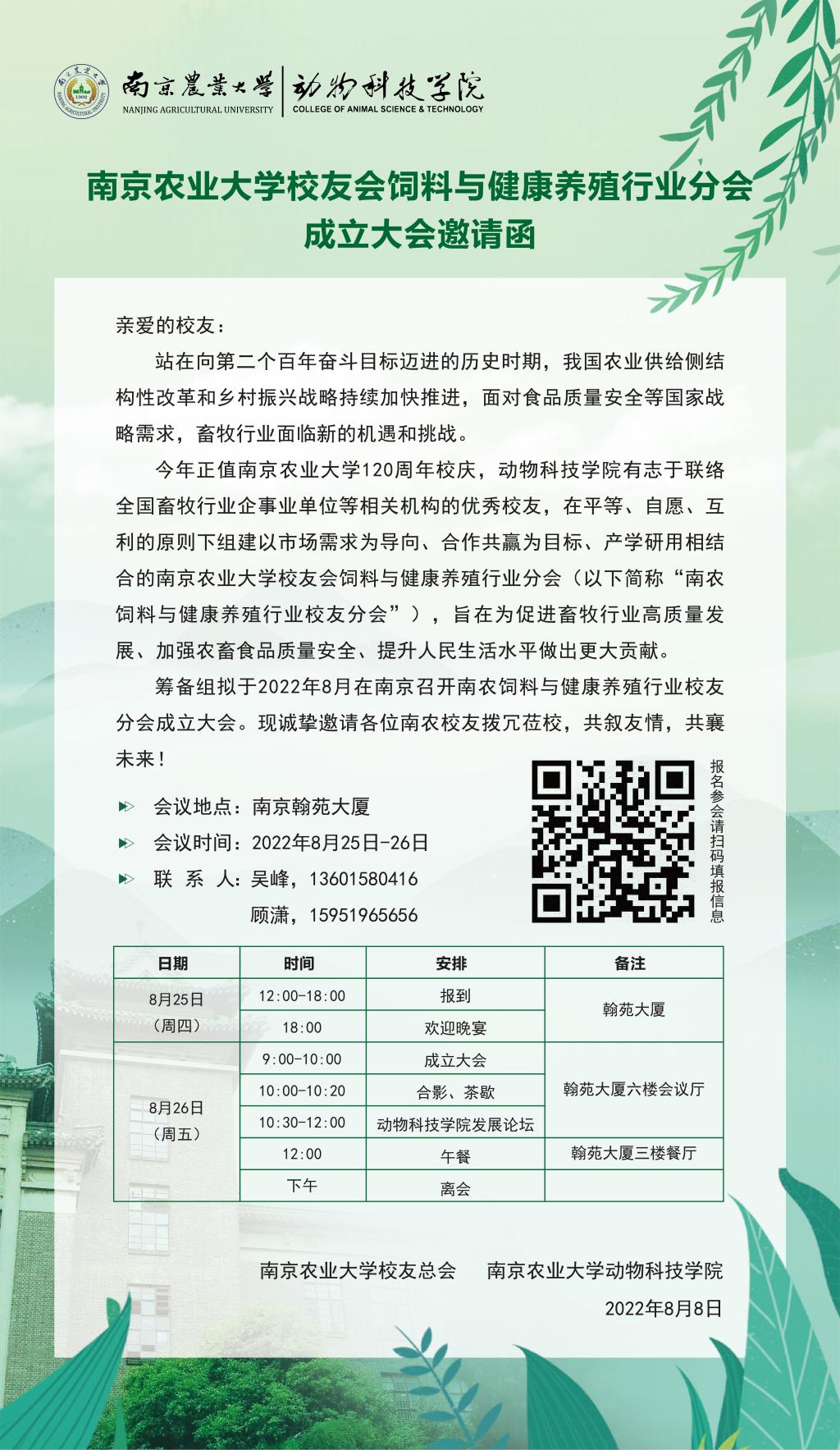 南京农业大学校友会饲料与健康养殖行业分会成立大会邀请函